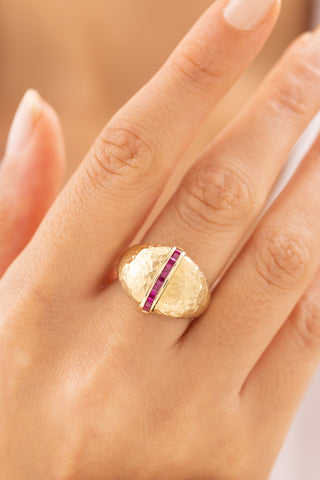 Cetaş Vintage Çekiç Dokulu Ruby 14 Ayar Altın Yüzük