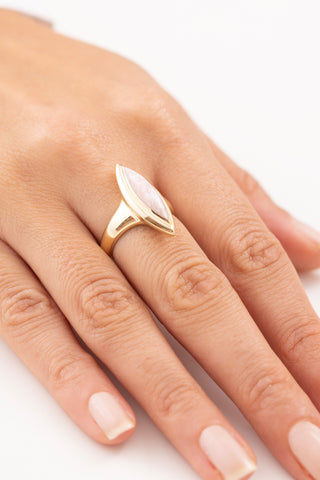 Cetaş Sedefli Marquise Form 14 Ayar Altın Yüzük