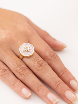 Cetaş Sedefli Yıldız Motifli 14 Ayar Altın Yüzük