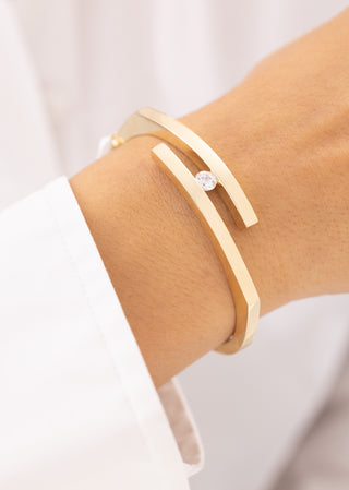 Cetaş Tek Taşlı Modern 14 Ayar Altın Kelepçe