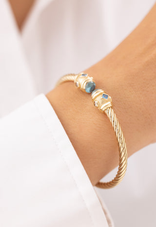 Cetaş Twist Antik Mavi Taşlı 14 Ayar Altın Kelepçe