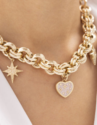 Cetaş Yıldızlı Kalpli Charmlı 14 Ayar Altın Kolye