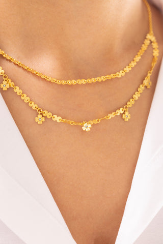 Çiçek Detaylı Çift Zincirli 14 Ayar Altın Kolye