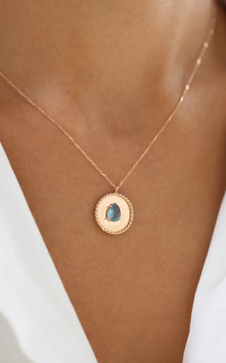 Damla Kesim Mavi Taşlı Yuvarlak 14 Ayar Altın Kolye