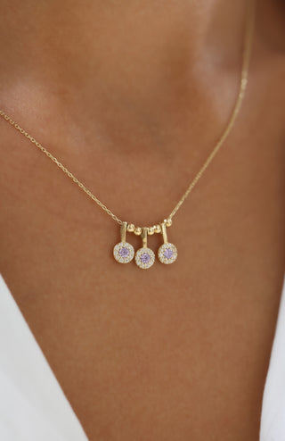 Göz Alıcı Mor Taşlı ve İşlemeli 14 Ayar Altın Kolye