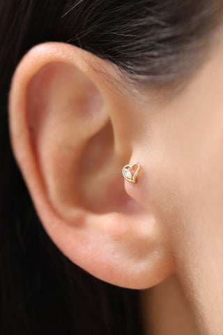 Kalp ve Taş Detaylı 14 Ayar Altın Piercing