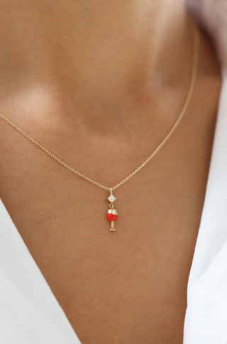 Kırmızı Mine İşlemeli Kadeh Figürlü 14 Ayar Altın Kolye