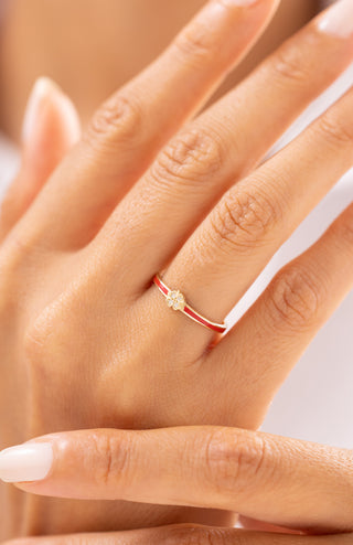 Kırmızı Mineli Minimal 14 Ayar Altın Yüzük