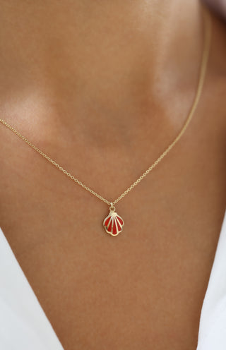Kırmızı Mineli Deniz Kabuğu 14 Ayar Altın Kolye