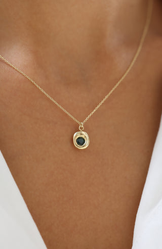 Koyu Taşlı Organik Form 14 Ayar Altın Kolye