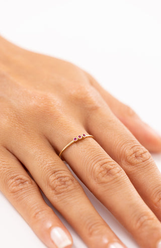 Minimal Pembe Taşlı 14 Ayar Altın Yüzük