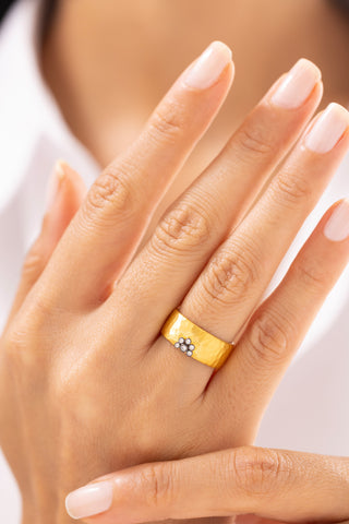 Bars Antik Çekiç Dokulu Taşlı 14 Ayar Altın Yüzük