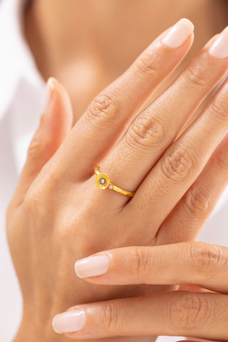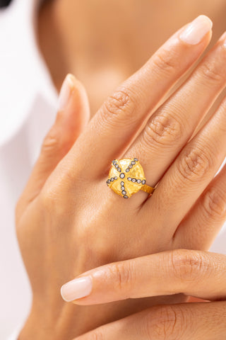 Bars Antik Yıldız Desenli Taşlı 14 Ayar Altın Yüzük