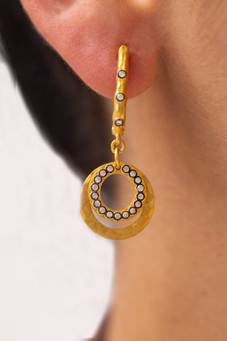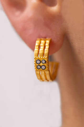 Bars Antik Dokulu Çift Sıra Taşlı 14 Ayar Altın Küpe