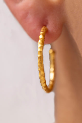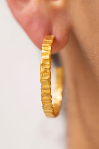 Bars Dalgalı Antik Dokulu 14 Ayar Altın Halka Küpe