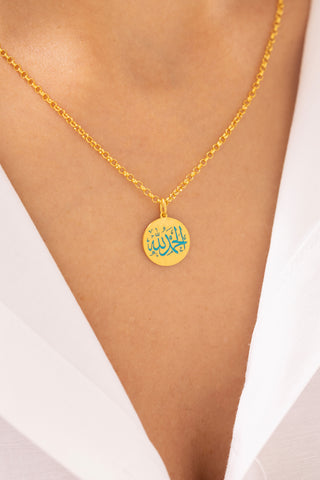 Bars Elhamdülillah Yazılı Mine Detaylı 14 Ayar Altın Kolye