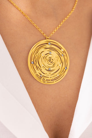 Bars Galaksi Desenli Işıltılı 14 Ayar Altın Kolye