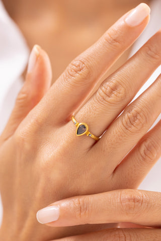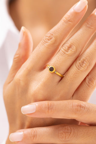 Bars Damla Kesim Siyah Taşlı 14 Ayar Altın Kadın Yüzük