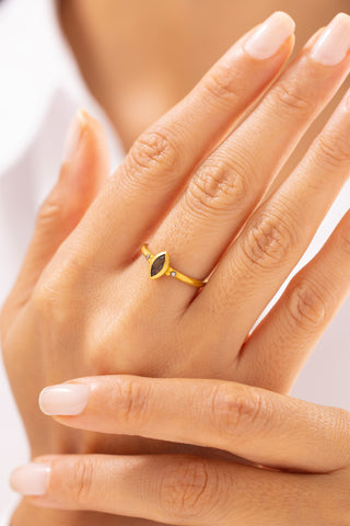 Bars Marquise Kesim Siyah Taşlı 14 Ayar Altın Yüzük