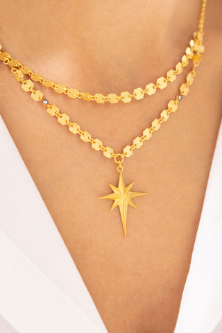 Bars Çift Zincirli Yıldız Uçlu 14 Ayar Altın Kolye