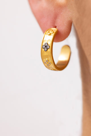 Bars Antik Çiçek Motifli Taşlı 14 Ayar Altın Halka Küpe