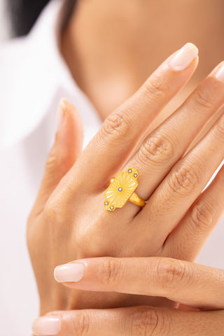 Bars Güneş Desenli Taşlı 14 Ayar Altın Yüzük