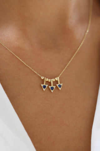 Modern Üçgen Figürlü Mavi Taşlı 14 Ayar Altın Kolye