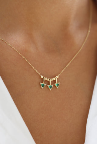Modern Üçgen Figürlü Yeşil Taşlı 14 Ayar Altın Kolye