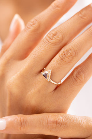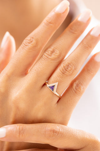 Mor Işıltı Üçgen Tasarım 14 Ayar Altın Yüzük