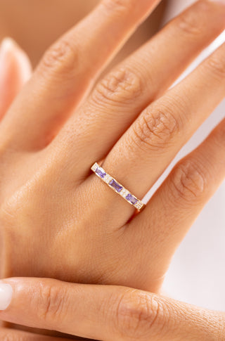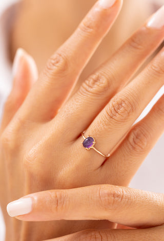 Mor Taşlı Minimal İnce 14 Ayar Altın Yüzük
