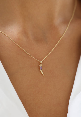 Mor Taşlı Kavis Formlu 14 Ayar Altın Küpe