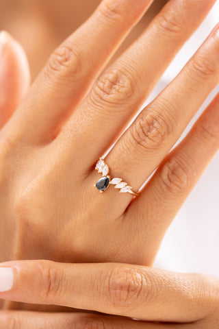 Parlak Beyaz ve Mavi Taşlı 14 Ayar Altın Yüzük