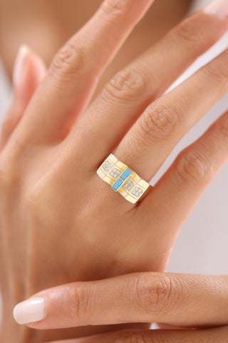 Özel Kesim Taşlı ve Turkuaz Detaylı 14 Ayar Altın Yüzük
