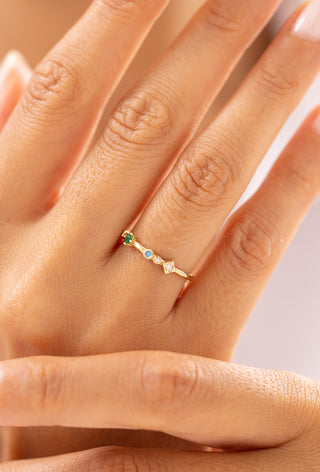 Renkli Taşlı Dokulu 14 Ayar Altın Yüzük