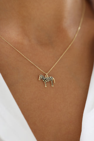 Safari Temalı Zebra 14 Ayar Altın Kolye