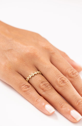 Sıralı Taşlı Yaprak Desenli 14 Ayar Altın Yüzük