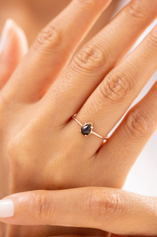 Siyah Mineli Taşlı Minimal 14 Ayar Altın Yüzük
