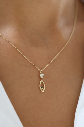 Siyah Taşlı Şans Sembolü 14 Ayar Altın Kolye