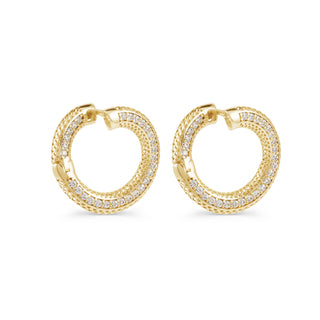 Taşlı Charm Sallantılı 14 Ayar Altın Küpe