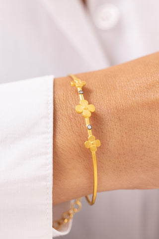 Taşlı Çiçekli Antik 14 Ayar Altın Kadın Kelepçe