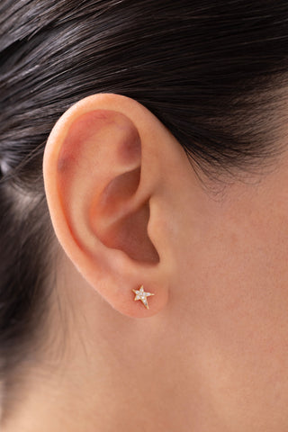 Taşlı Yıldız Minimal 14 Ayar Altın Küpe
