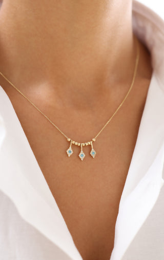 Üç Sıralı Mavi Taş Detaylı 14 Ayar Altın Kolye