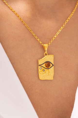 Turuncu Taşlı Antik Göz Detaylı 14 Ayar Altın Kolye
