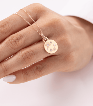 Yıldız Taşlı Madalyon 14 Ayar Altın Kolye