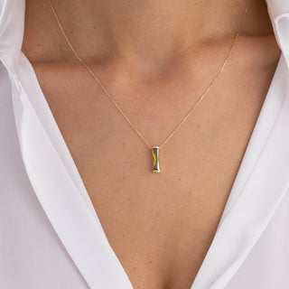 Yeşil Taşlı Stick 14 Ayar Altın Kolye