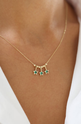 Yıldız Figürlü Yeşil Taşlı 14 Ayar Altın Kolye