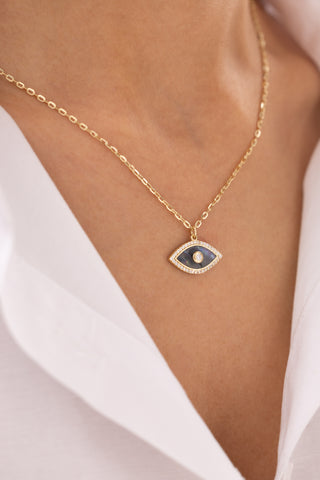 Taş Mineli Işıltılı Göz Desenli 14 Ayar Altın Kolye