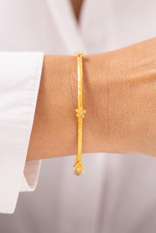 Çekiç Dokulu Çiçek Desenli 14 Ayar Altın Kelepçe