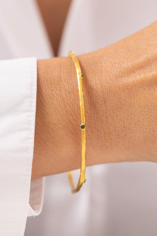 Çekiç Dokulu Yeşil Taşlı 14 Ayar Altın Kelepçe