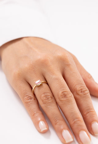 Pembe Baget Taş Detaylı 14 Ayar Altın Yüzük